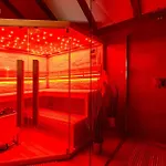 Along with tea and coffee-making facilities, a fully-fitted kitchen is provided in the property for cooking purposes. There is also a fridge, an oven, and kitchenware available in the kitchen. The on-site treatment facilities include a sauna.